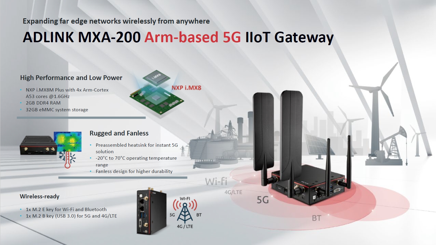 Arm 기반 5G IIoT 게이트웨이는 IT/OT를 원활하게 연결하여 어디서나 무선으로 원격 엣지 네트워크를 쉽게 확장합니다.